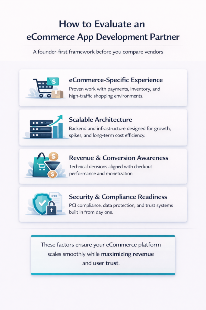 Evaluate developers based on proven eCommerce experience with measurable results, technical expertise in required features and integrations, communication processes and project management approaches, pricing models fitting your budget, post-launch support offerings, and cultural alignment with your business goals.