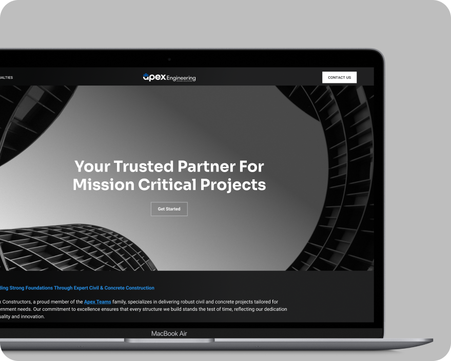 Apex Team needed a digital solution that would address multiple objectives simultaneously. The platform had to unify diverse divisions under one brand while maintaining distinct identities for each specialized area. Content architecture had to serve government entities, commercial clients, prospective employees, and subcontractors without creating confusion. Case studies and portfolio sections needed to demonstrate measurable results and high-caliber execution. A dedicated talent and subcontractor section had to position Apex Team as the employer and partner of choice. SEO optimization had to capture industry-specific searches. And the entire platform needed to be manageable by internal staff without ongoing developer dependency. Beyond the main website, standalone micro sites for Apex Constructors, LLC and Apex Engineering and Design Solutions required distinct brand identities while maintaining technical consistency.
