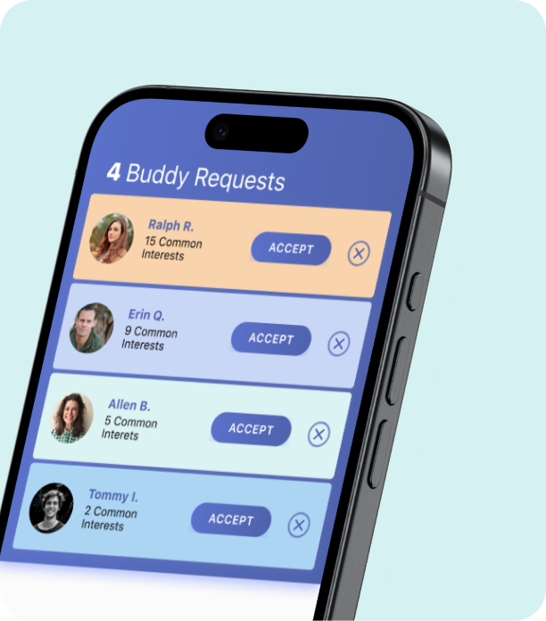 Imagine giving your community a digital space where safety comes first, where meaningful connections are built on genuine common ground, and where your team can manage and protect users without relying on developers for every decision. That is what we built with Buddy Project, and it is the same level of thoughtfulness and technical rigor we can bring to your own platform. Whether you are creating a community app, a peer support tool, or a social impact product, our team is ready to partner with you from vision to launch and beyond.