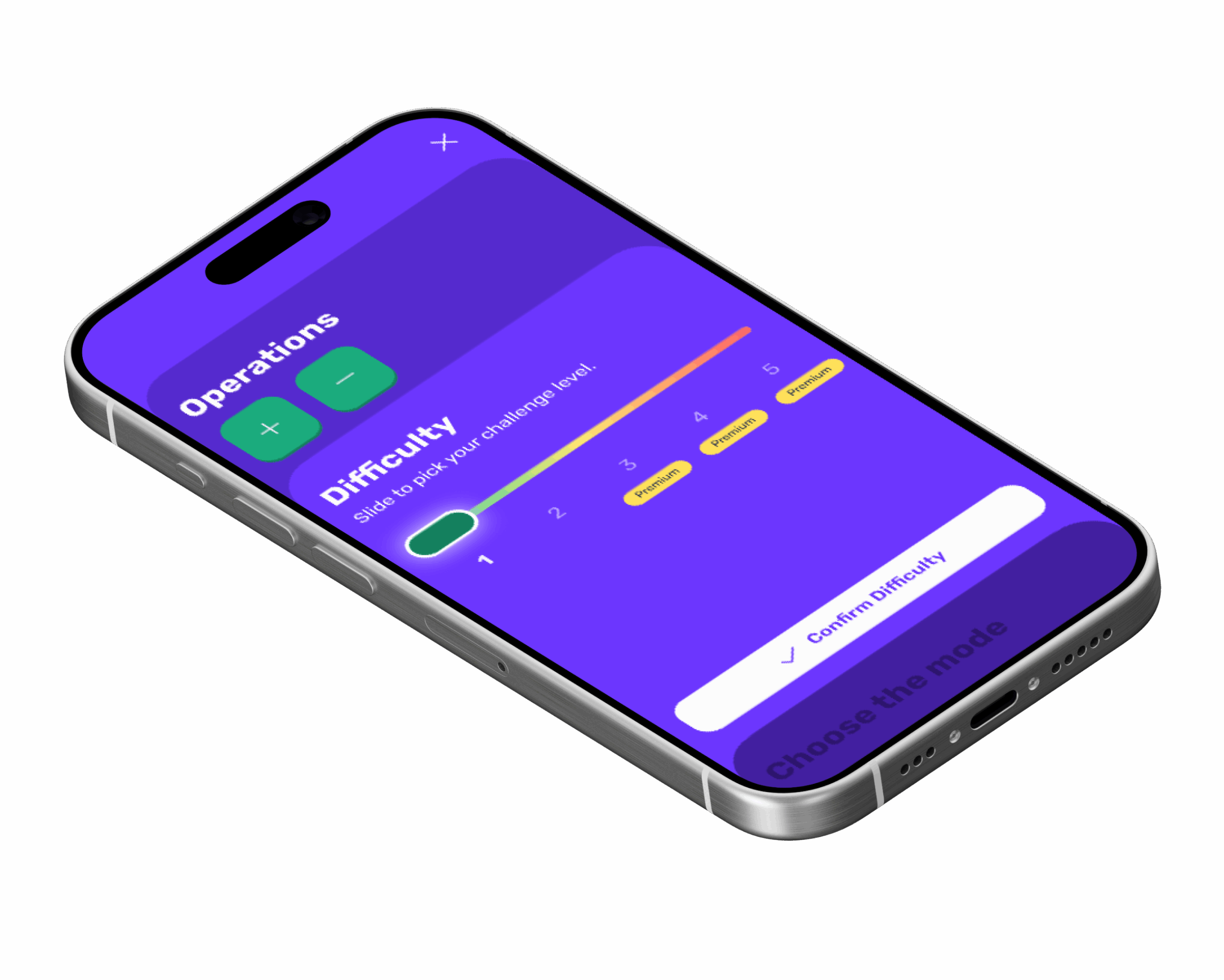 Under the hood, we implemented a five level difficulty system that respects mental math reality. Free players access Levels 1 and 2, which focus on clean two digit addition and subtraction with results that can be solved in your head. Premium unlocks Levels 3 through 5, which introduce multi step operations, longer division, fractions with unlike denominators, percentage changes, and basic powers and roots. Each level has carefully tuned number ranges, so quizzes feel challenging and satisfying, but never impossible. The app does not teach new concepts. It honors the skills users already have and challenges them to apply those skills with speed and confidence.