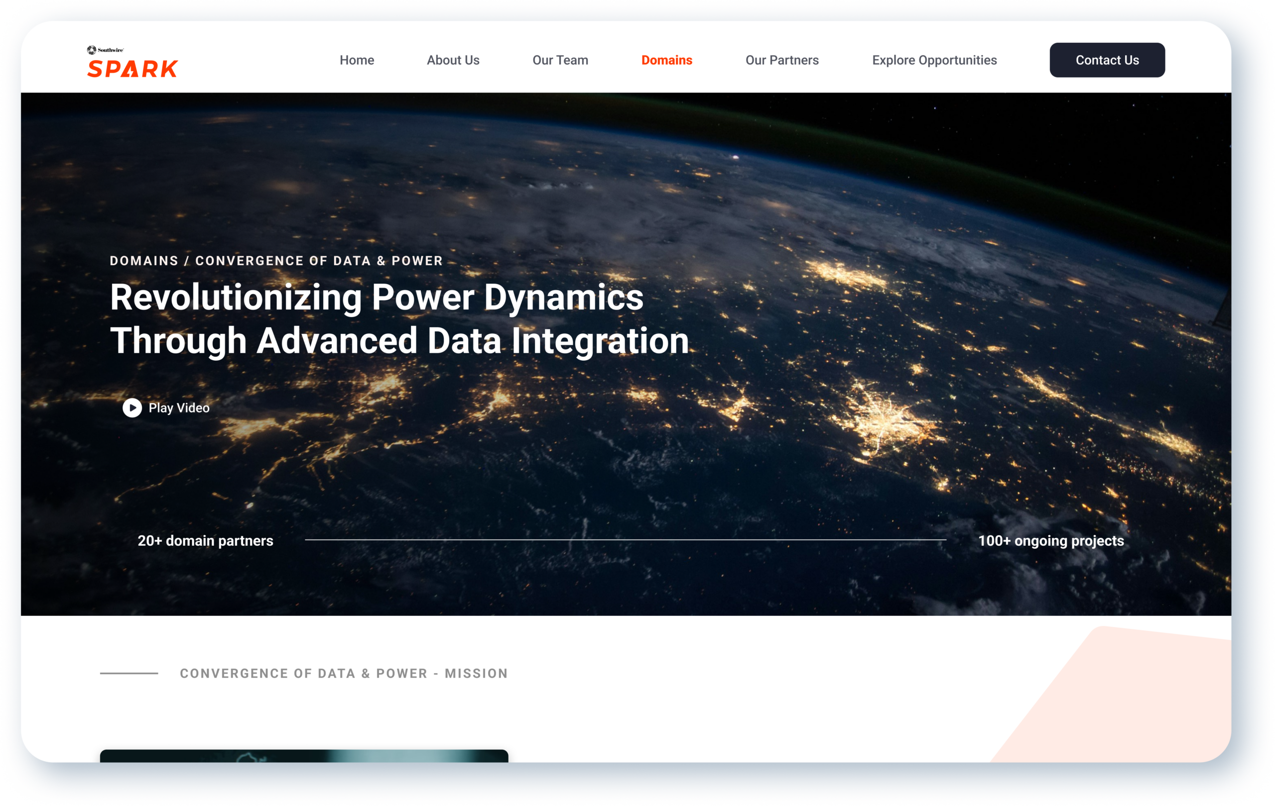 From the very first conversation, we understood that Southwire Spark’s website needed to balance sophistication with accessibility. Working closely with their team, we mapped the site structure to serve diverse audience needs: partners seeking collaboration opportunities, stakeholders tracking initiatives, and visitors exploring domain expertise. We defined how content should be organized across About Us sections, domain pages, team profiles, and partnership showcases to create intuitive navigation pathways.