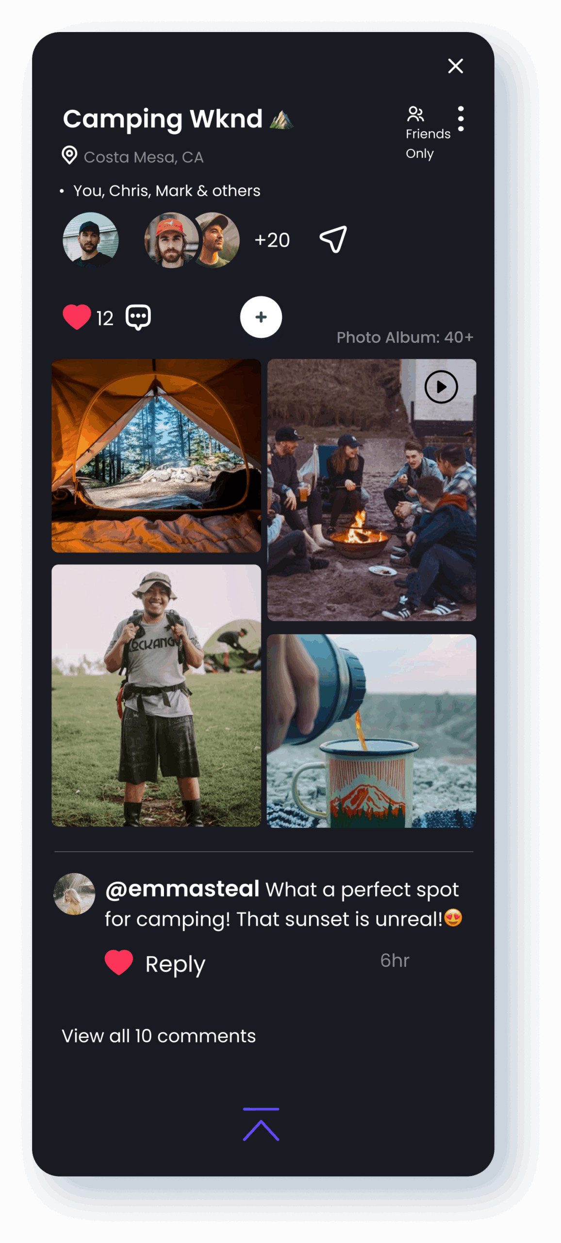 When you spend time with friends or new connections, Wegloo drafts a memory with who was there, where you were, and when it happened, ready for photos, comments, and nostalgia later.